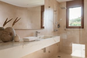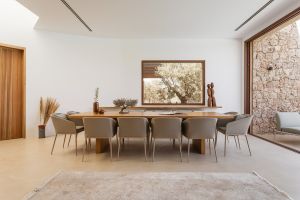 The property extends in two levels, ravishing for the beauty of the natural stone that clothes it. The ground level features a large open living space with dining area, adjacent kitchen and 4 bedrooms with en site bathrooms as well as a guest WC. The lower level offers an independent apartment suite with a separate entrance and exterior staircase connecting the apartment to the terrace and pool. The floor to ceiling windows that open to the pool terrace give you a mind-blowing sea view while the crystal-clear waters of the small cove at the end of a private path is the gateway you need to reinvent yourself.