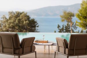 Villa Cuore, a stunning villa designed by the renowned architect Javier Barba, blends in with its natural ambiens, paying the ultimate respect to the environment and the outstanding views of Kilada Bay.