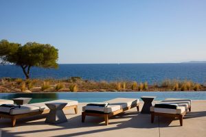 Designed for elevated living, the villa includes an Infinity Pool, fully equipped kitchen, outdoor BBQ and bar, lounge area with firepit, fitness space, and a serene spa with steam room and sauna. Guests also enjoy direct access to a private beach, beach gear, a private jetty, and use of the flood-lit tennis court.