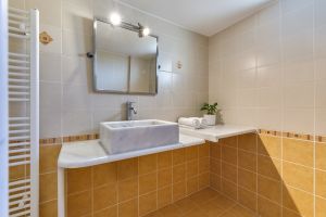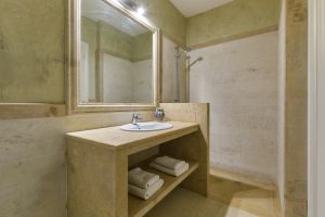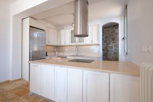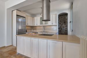 On the pool level there is a double bed bedroom, a bathroom, an open plan kitchen-dining room, with a fireplace, and utility rooms. There is also an independent entrance and a marvellous staircase that leads to the second floor. The second floor features a double bed bedroom, a bathroom, a living room with a fireplace and a second reception room with a sofa bed opening to a double bed.