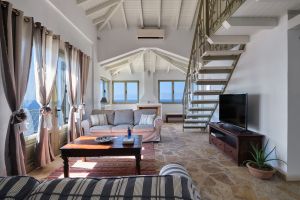 White Plumbago is a two-floor mansion that also features a beautiful attic, with an open plan twin bed bedroom with an en suite w.c. On the ground floor there is a double bed bedroom, a bathroom and a study corner. It also includes an open plan, spacious area that offers a billiards table and one more double bed.